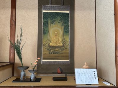 お寺にお参りの方は、是非この『釈迦成道図』をご覧いただき、お釈迦様がお悟りを開かれたご縁とその教えに触れることができたご恩に感謝申し上げ、思いをはせていただきたく思います。